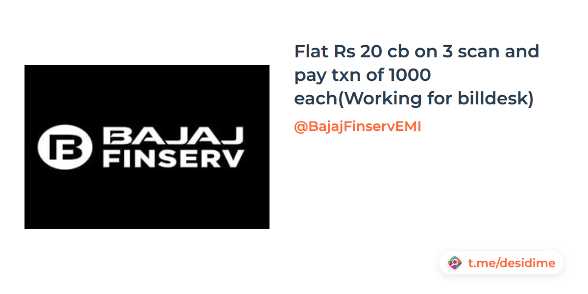 🌡374° - Bajaj Finserv - Flat Rs 20 cb on 3 scan and pay txn of 1000 each(Working for billdesk)