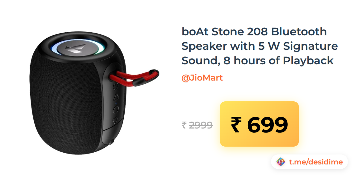 77% off on - boAt Stone 208 Bluetooth Speaker with 5 W Signature Sound, 8 hours of Playback - Rs. 699