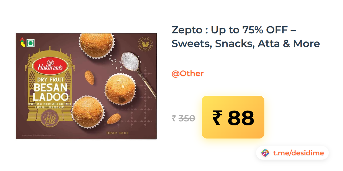 75% off on - Zepto : Up to 75% OFF – Sweets, Snacks, Atta & More - Rs. 88