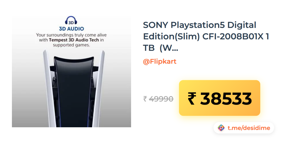 23% off on - SONY Playstation5 Digital Edition(Slim) CFI-2008B01X 1 TB  (White, Black) - Rs. 38533