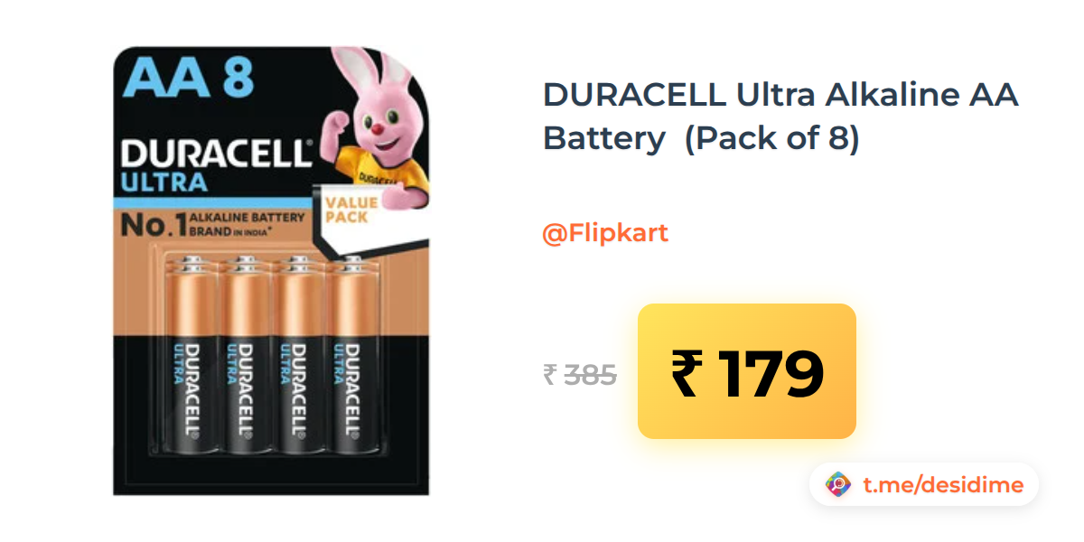 54% off on - DURACELL Ultra Alkaline AA Battery (Pack of 8) - Rs. 179
