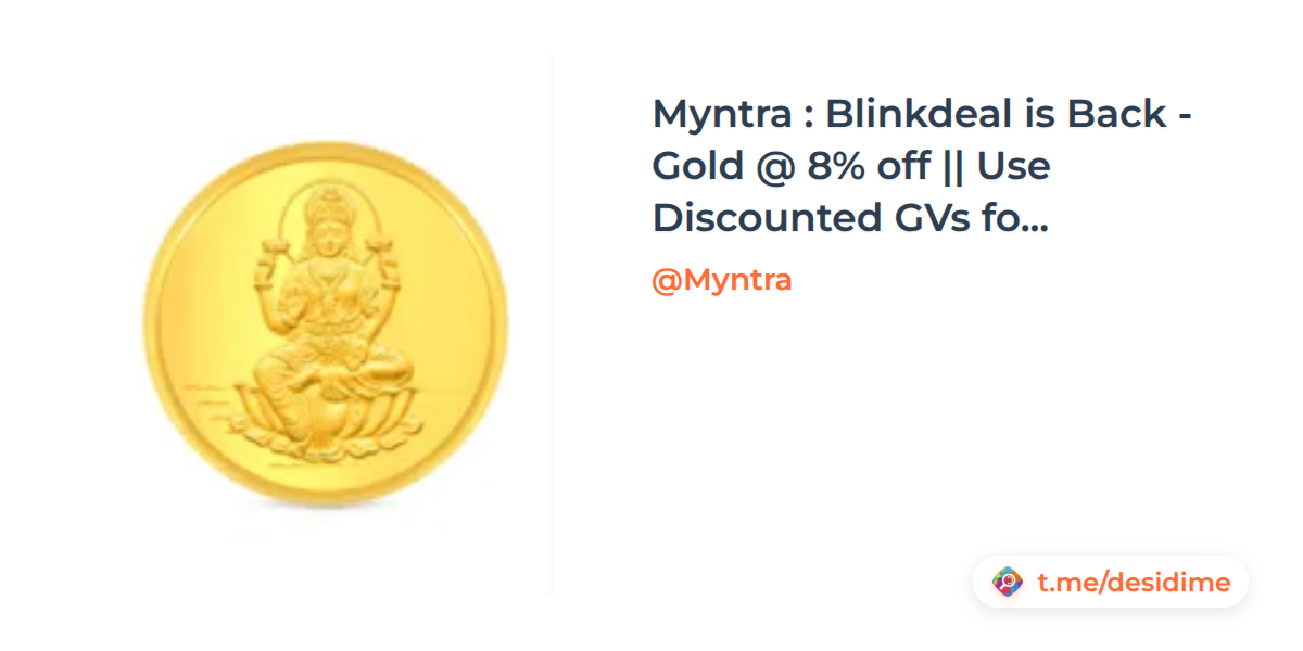 Myntra : Blinkdeal is Back - Gold @ 8% off || Use Discounted GVs for max benefit