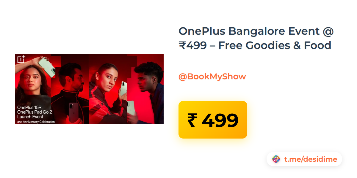 OnePlus Bangalore Event @ ₹499 – Free Goodies & Food - Rs. 499