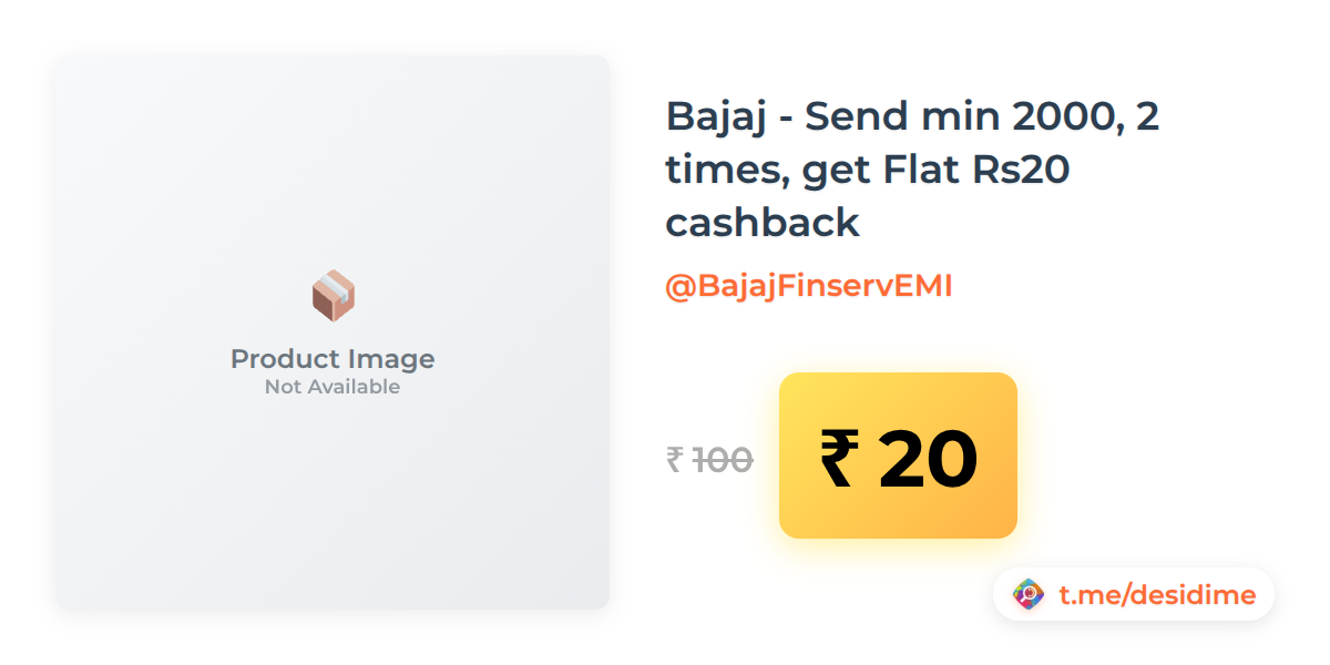 80% off on - Bajaj - Send min 2000, 2 times, get Flat Rs20 cashback - Rs. 20
