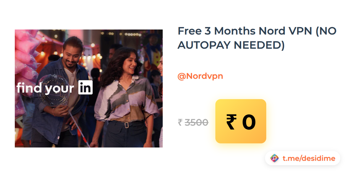 100% off on - Free 3 Months Nord VPN (NO AUTOPAY NEEDED) - Rs. 0