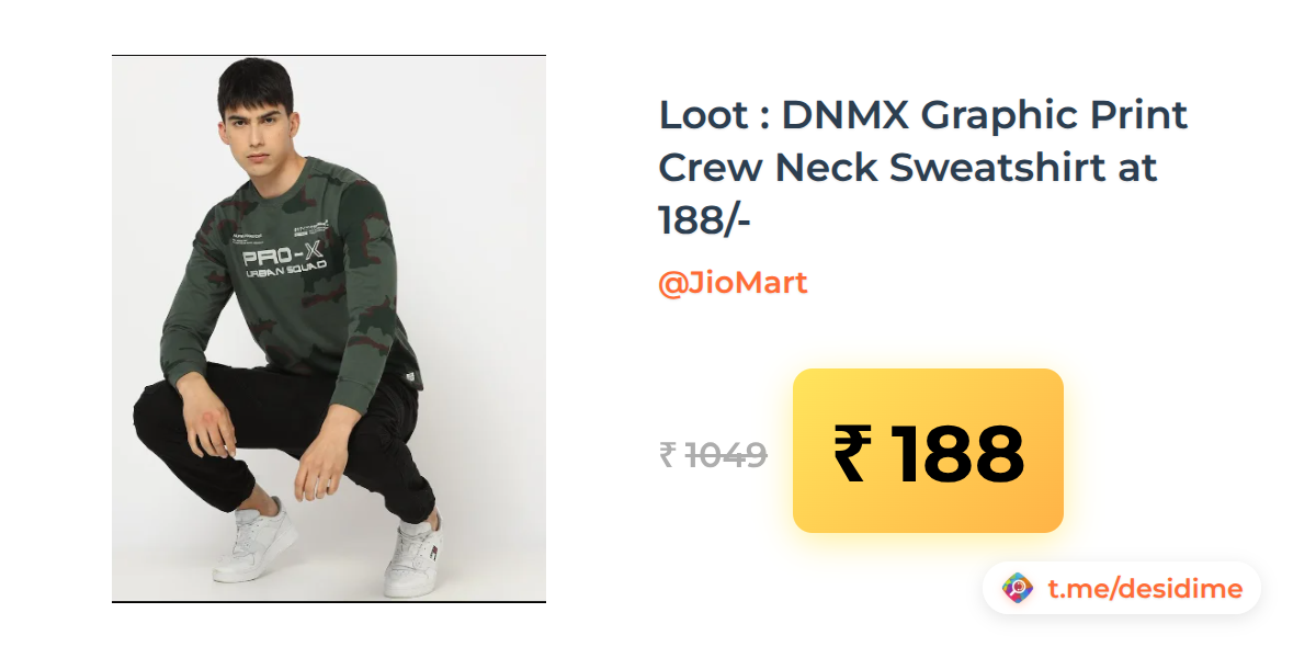 82% off on - Loot : DNMX Graphic Print Crew Neck Sweatshirt at 188/- - Rs. 188