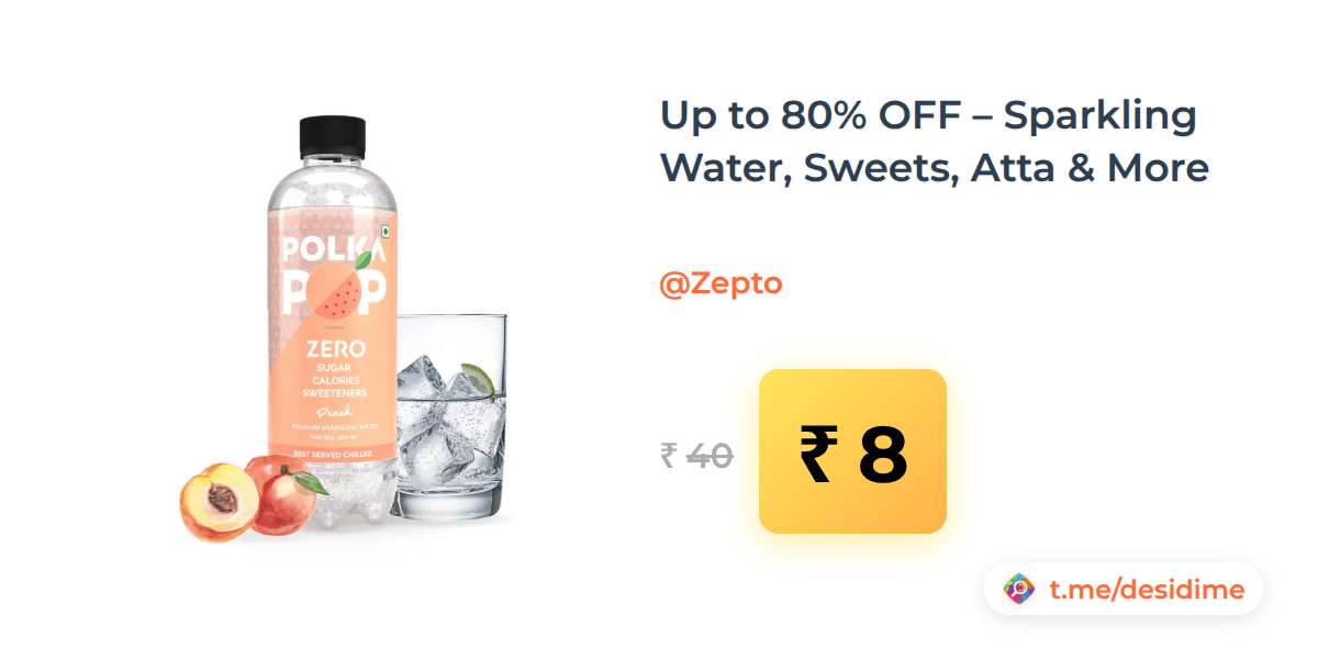 80% off on - Up to 80% OFF – Sparkling Water, Sweets, Atta & More - Rs. 8