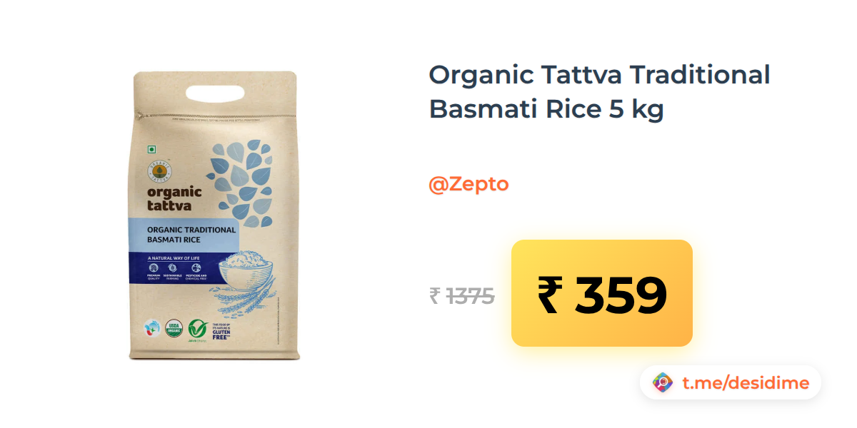74% off on - Organic Tattva Traditional Basmati Rice 5 kg - Rs. 359