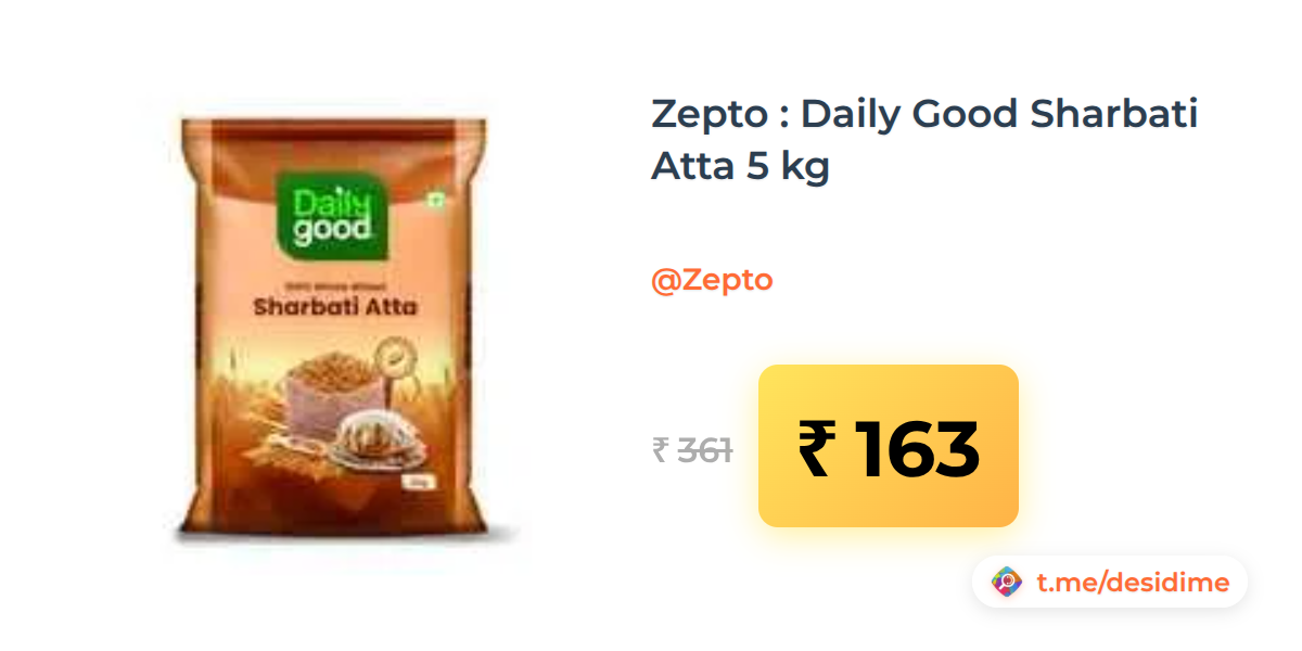 55% off on - Zepto : Daily Good Sharbati Atta 5 kg - Rs. 163