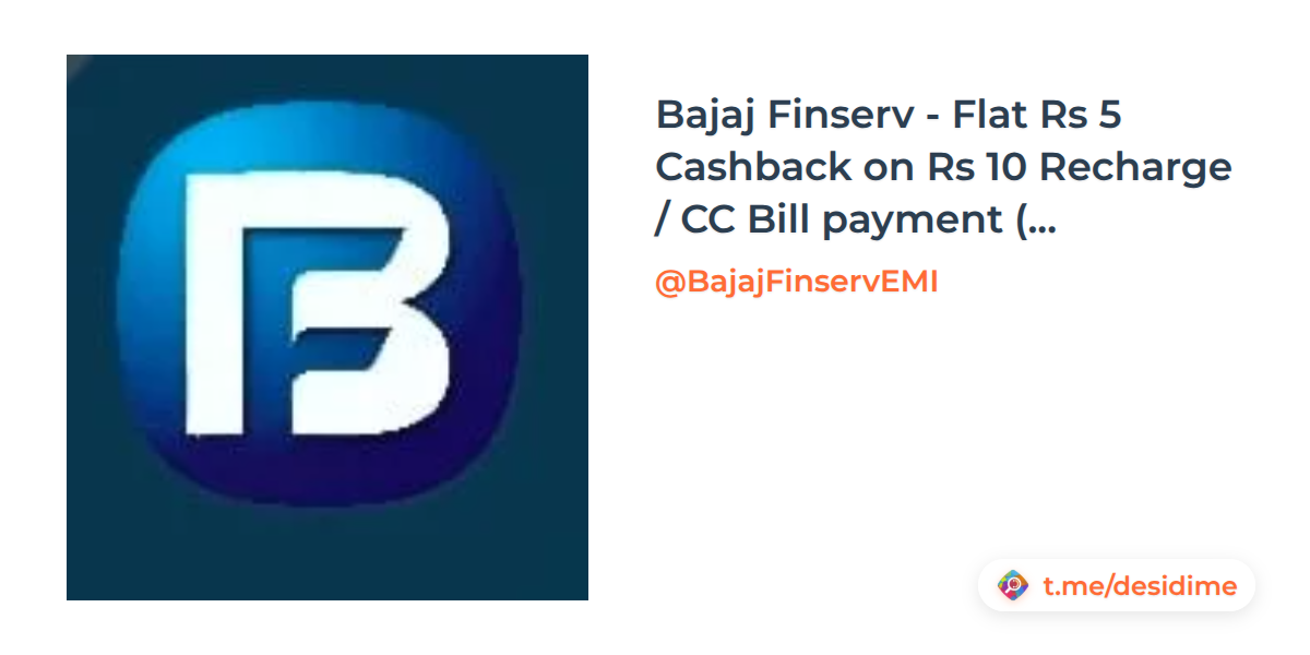 Bajaj Finserv - Flat Rs 5 Cashback on Rs 10 Recharge / CC Bill payment ( 7PM - 9 PM )