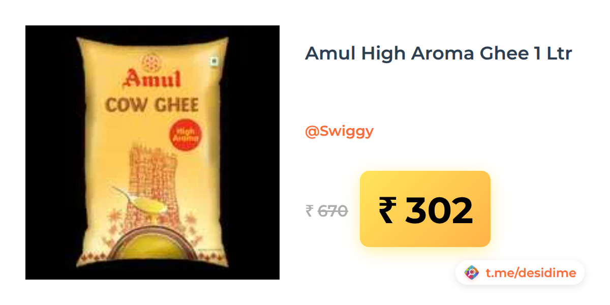 55% off on - Amul High Aroma Ghee 1 Ltr - Rs. 302