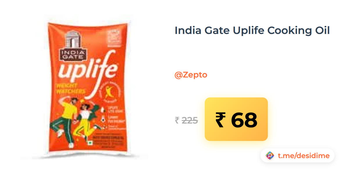 70% off on - India Gate Uplife Cooking Oil - Rs. 68