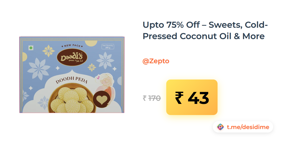 75% off on - Upto 75% Off – Sweets, Cold-Pressed Coconut Oil & More - Rs. 43