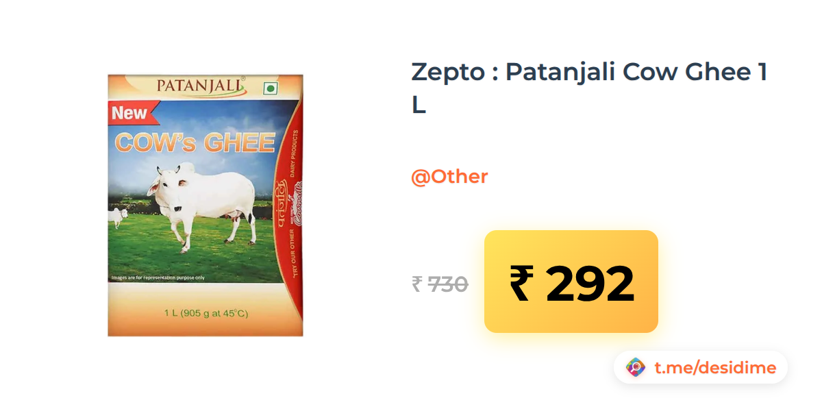 60% off on - Zepto : Patanjali Cow Ghee 1 L - Rs. 292