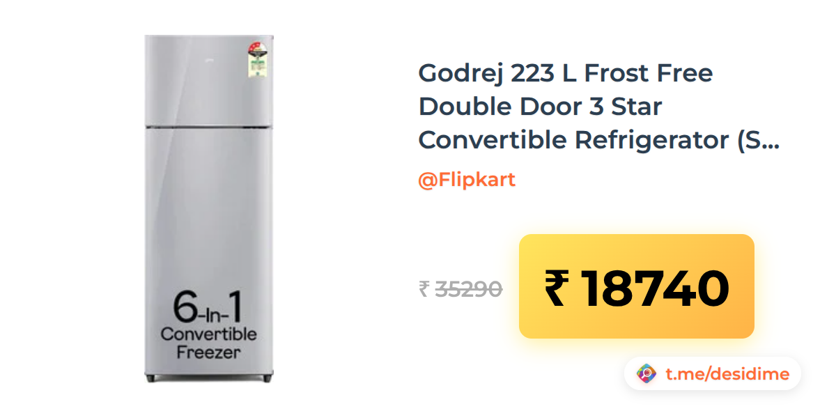 47% off on - Godrej 223 L Frost Free Double Door 3 Star Convertible Refrigerator (Steel Rush) - Rs. 18740