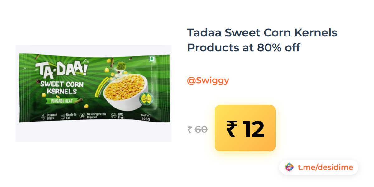 80% off on - Tadaa Sweet Corn Kernels Products at 80% off - Rs. 12