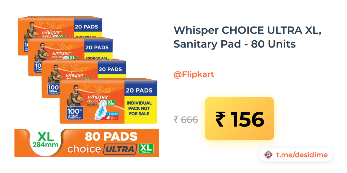 77% off on - Whisper CHOICE ULTRA XL, Sanitary Pad - 80 Units - Rs. 156