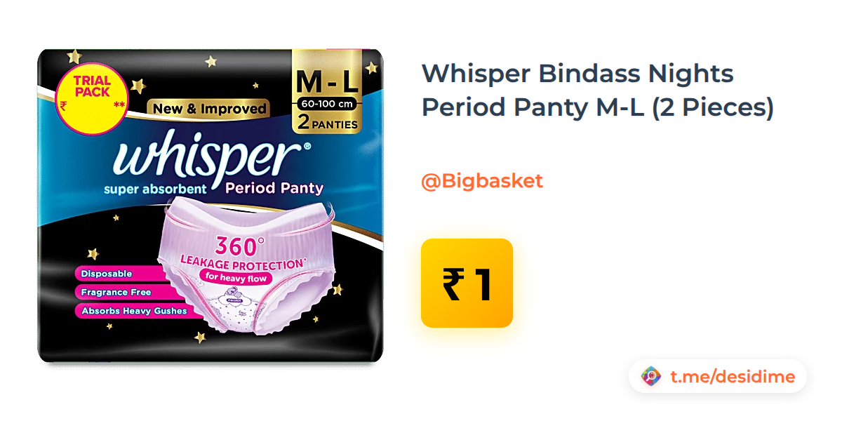 Whisper Bindass Nights Period Panty M-L (2 Pieces) - Rs. 1