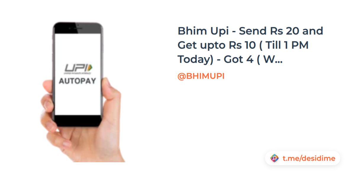 Bhim Upi - Send Rs 20 and Get upto Rs 10 ( Till 1 PM Today) - Got 4 ( Working Without Notification also)