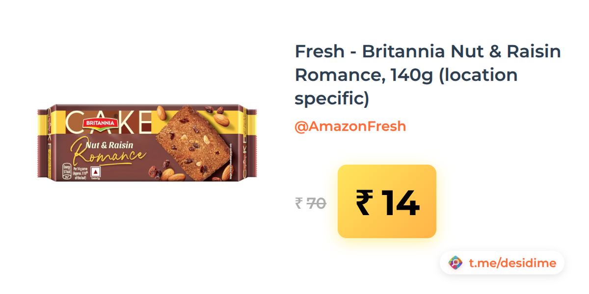 80% off on - Fresh - Britannia Nut & Raisin Romance, 140g (location specific) - Rs. 14