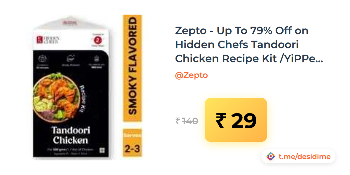 79% off on - Zepto - Up To 79% Off on Hidden Chefs Tandoori Chicken Recipe Kit /YiPPee! Tricolor Creamy Corn Instant Pasta - Rs. 29