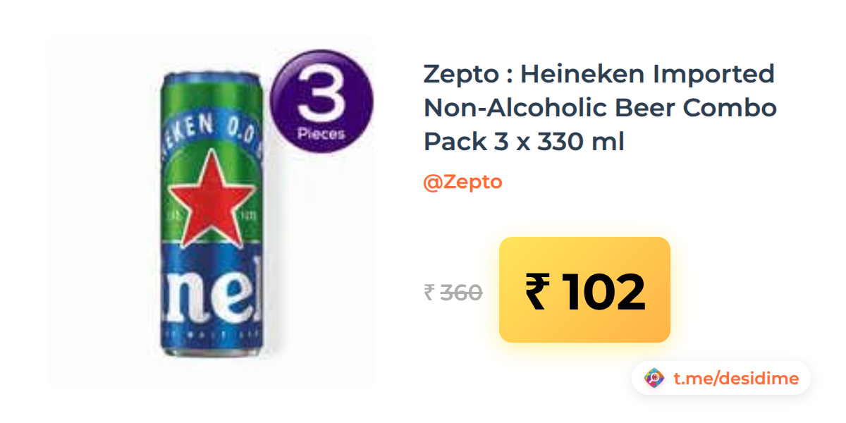 72% off on - Zepto : Heineken Imported Non-Alcoholic Beer Combo Pack 3 x 330 ml - Rs. 102