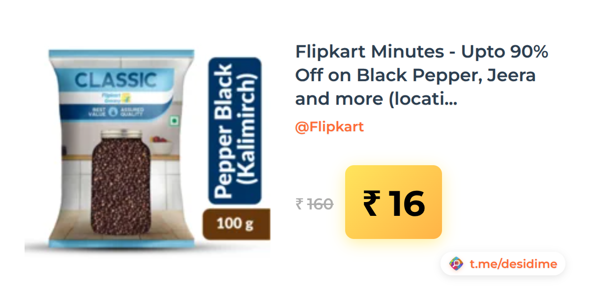 90% off on - Flipkart Minutes - Upto 90% Off on Black Pepper, Jeera and more (location specific) - Rs. 16