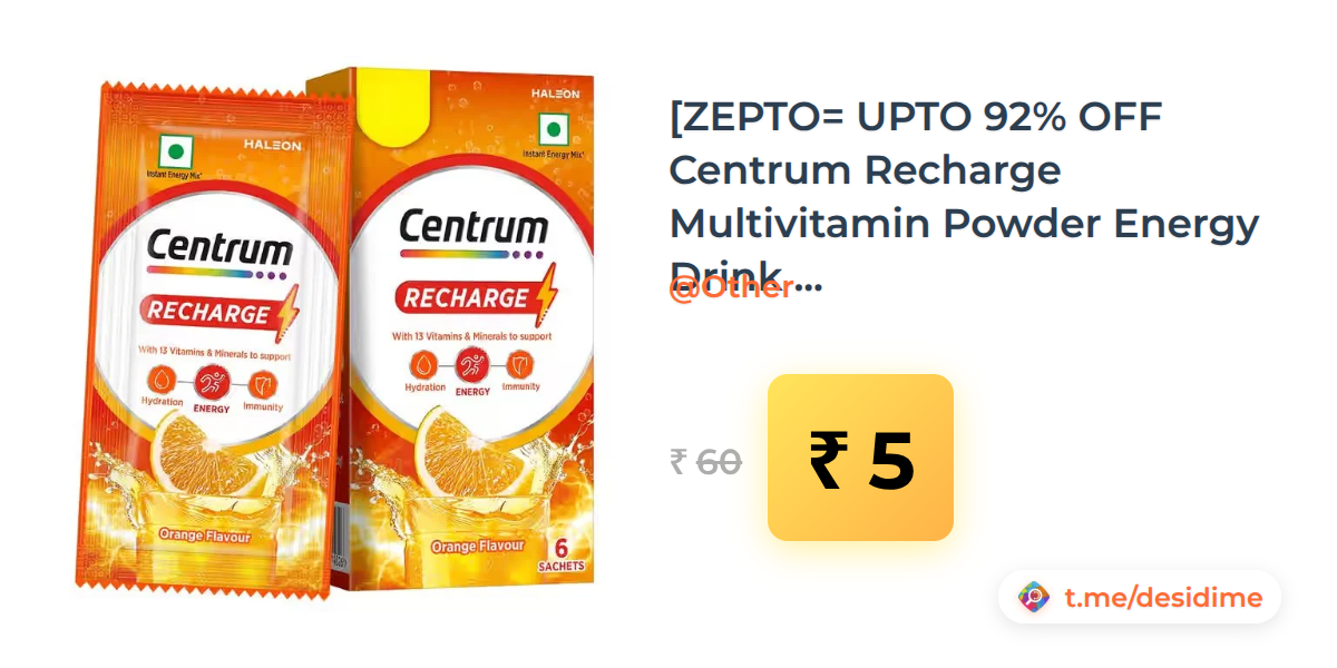 92% off on - [ZEPTO= UPTO 92% OFF Centrum Recharge Multivitamin Powder Energy Drink Mix /Nutraj Flax Seeds/CURD/AND MORE] - Rs. 5