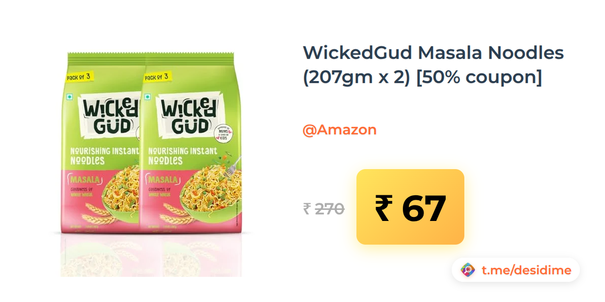 75% off on - WickedGud Masala Noodles (207gm x 2) [50% coupon] - Rs. 67