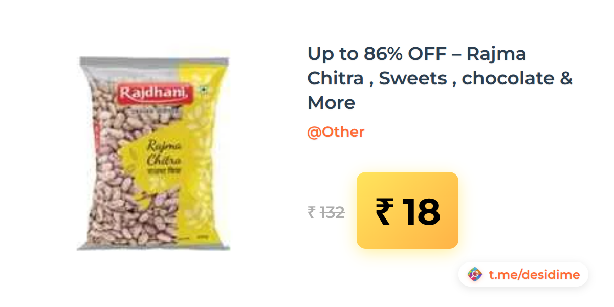 86% off on - Up to 86% OFF – Rajma Chitra , Sweets , chocolate & More - Rs. 18
