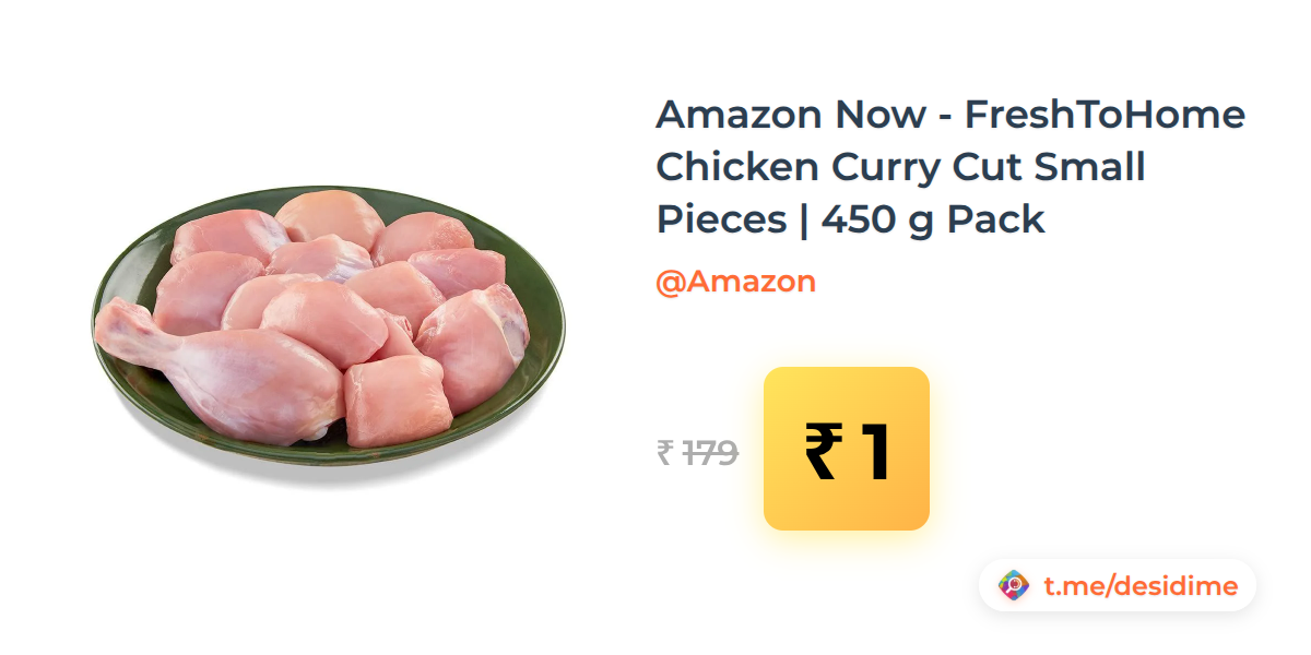 99% off on - Amazon Now - FreshToHome Chicken Curry Cut Small Pieces | 450 g Pack - Rs. 1