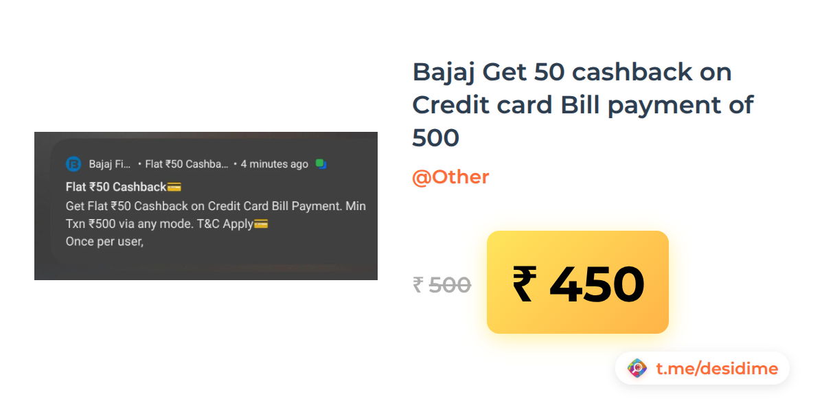 10% off on - Bajaj Get 50 cashback on Credit card Bill payment of 500 - Rs. 450