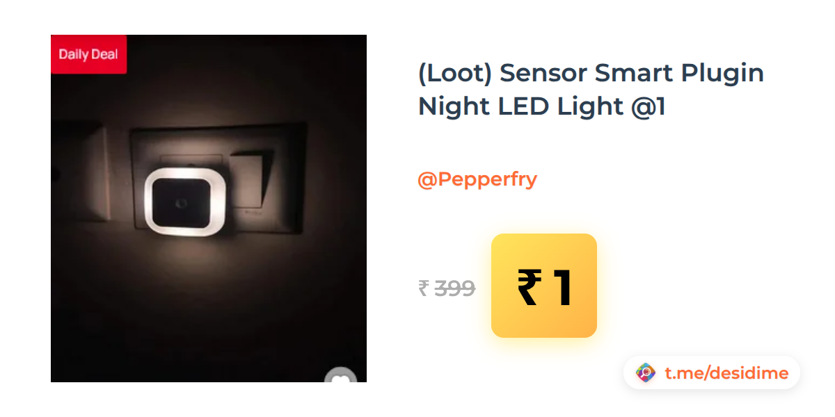 100% off on - (Loot) Sensor Smart Plugin Night LED Light @1 - Rs. 1