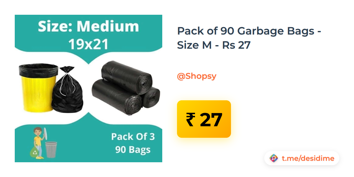 93% off on - Pack of 90 Garbage Bags - Size M - Rs 27 - Rs. 27