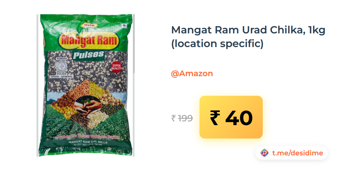 80% off on - Mangat Ram Urad Chilka, 1kg (location specific) - Rs. 40