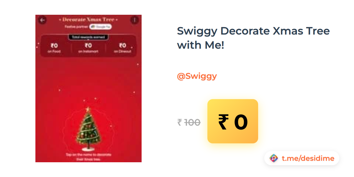 100% off on - Swiggy Decorate Xmas Tree with Me! - Rs. 0
