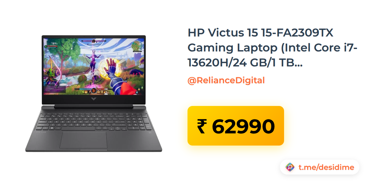 52% off on - HP Victus 15 15-FA2309TX Gaming Laptop (Intel Core i7-13620H/24 GB/1 TB SSD/8 GB-NVIDIA GeForce RTX-5050/Windows 11 Home/MS Office Home 2024 + 1 year M365 Basic/Full HD), 39.62 cm - 15.6 inch, Mica Silver - Rs. 62990