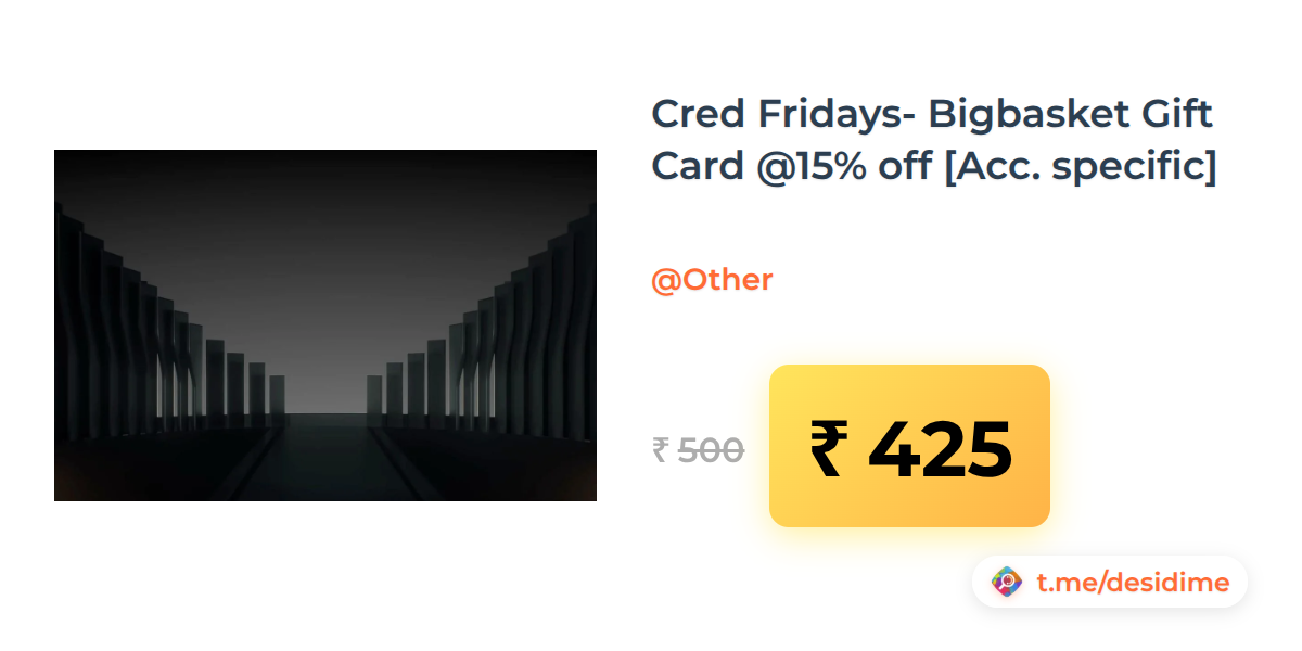 15% off on - Cred Fridays- Bigbasket Gift Card @15% off [Acc. specific] - Rs. 425