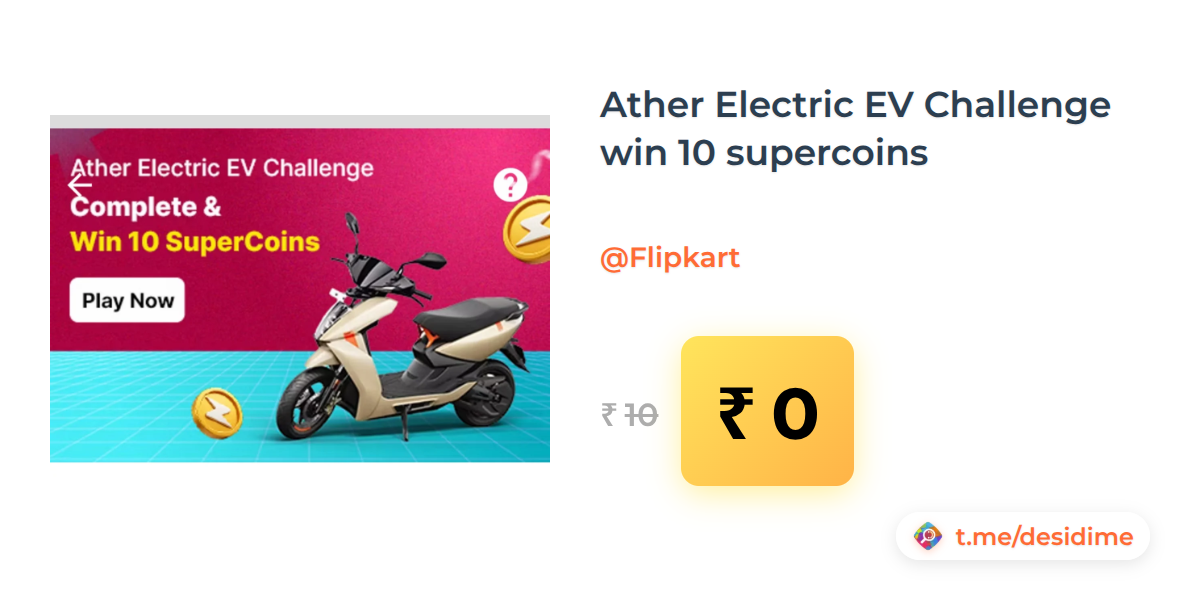 100% off on - Ather Electric EV Challenge win 10 supercoins - Rs. 0