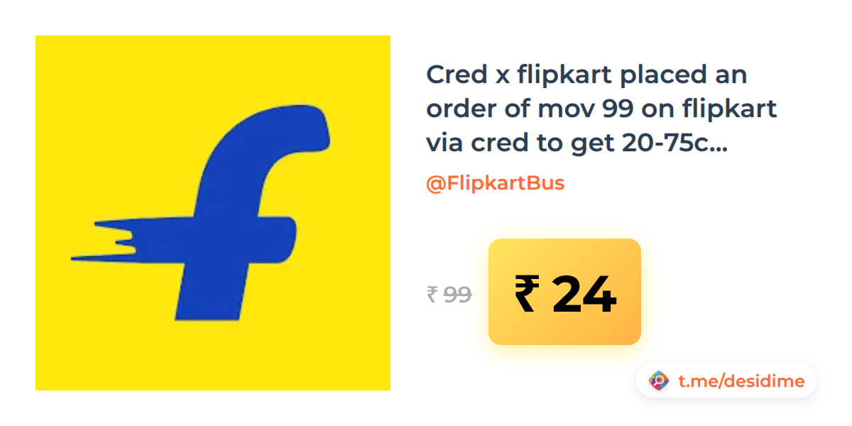 76% off on - Cred x flipkart placed an order of mov 99 on flipkart via cred to get 20-75cashback - Rs. 24