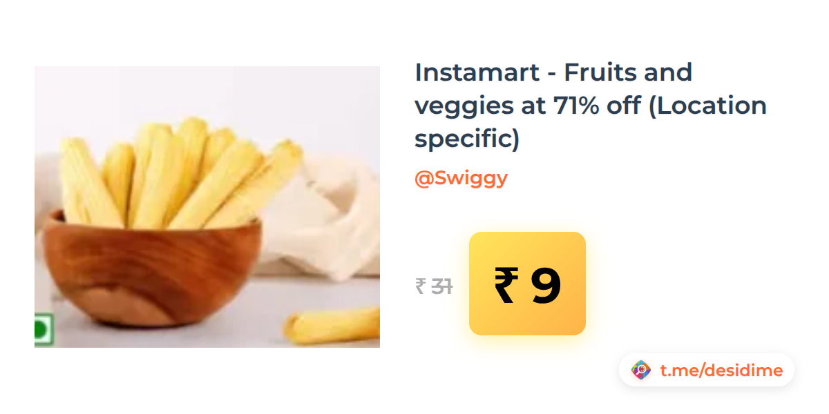 71% off on - Instamart - Fruits and veggies at 71% off (Location specific) - Rs. 9