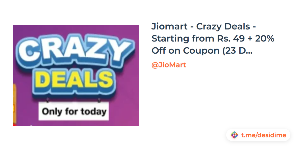 Jiomart - Crazy Deals - Starting from Rs. 49 + 20% Off on Coupon (23 Dec)