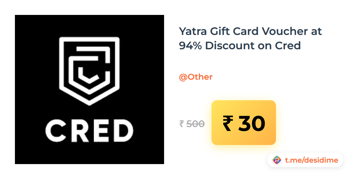 94% off on - Yatra Gift Card Voucher at 94% Discount on Cred - Rs. 30