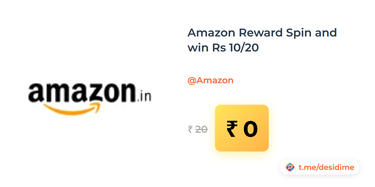 100% off on - Amazon Reward Spin and win Rs 10/20 - Rs. 0
