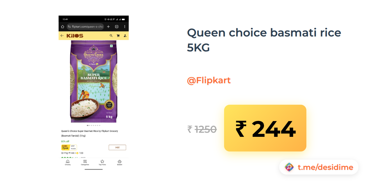 80% off on - Queen choice basmati rice 5KG - Rs. 244