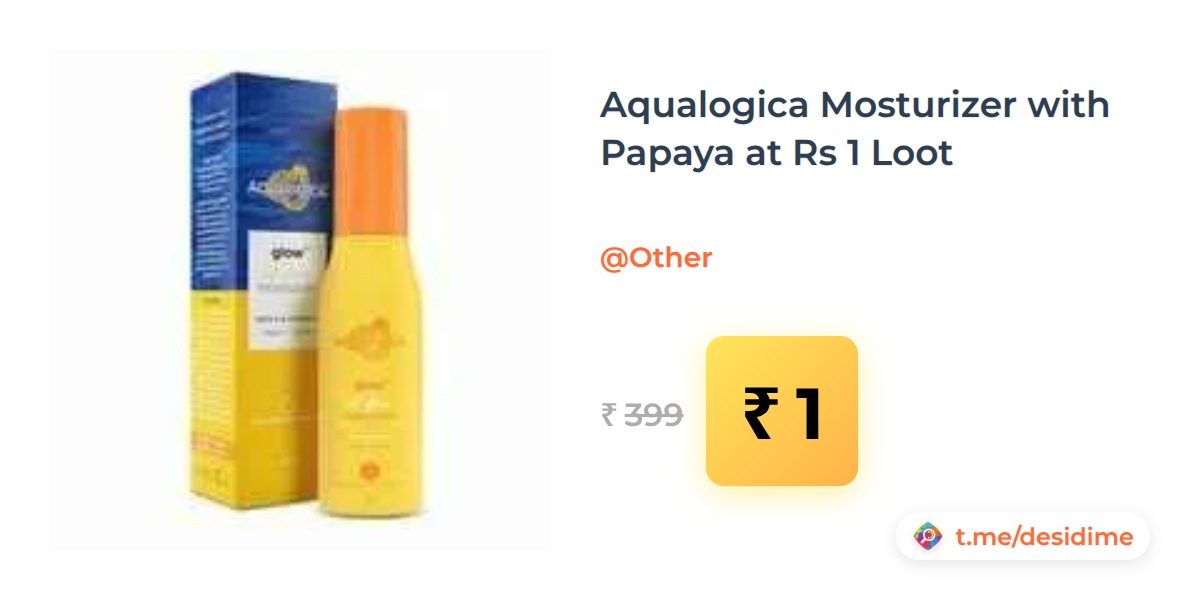 100% off on - Aqualogica Mosturizer with Papaya at Rs 1 Loot - Rs. 1