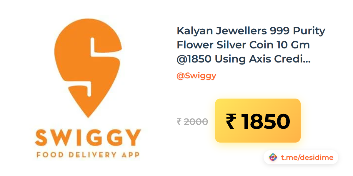 8% off on - Kalyan Jewellers 999 Purity Flower Silver Coin 10 Gm @1850 Using Axis Credit Card. - Rs. 1850
