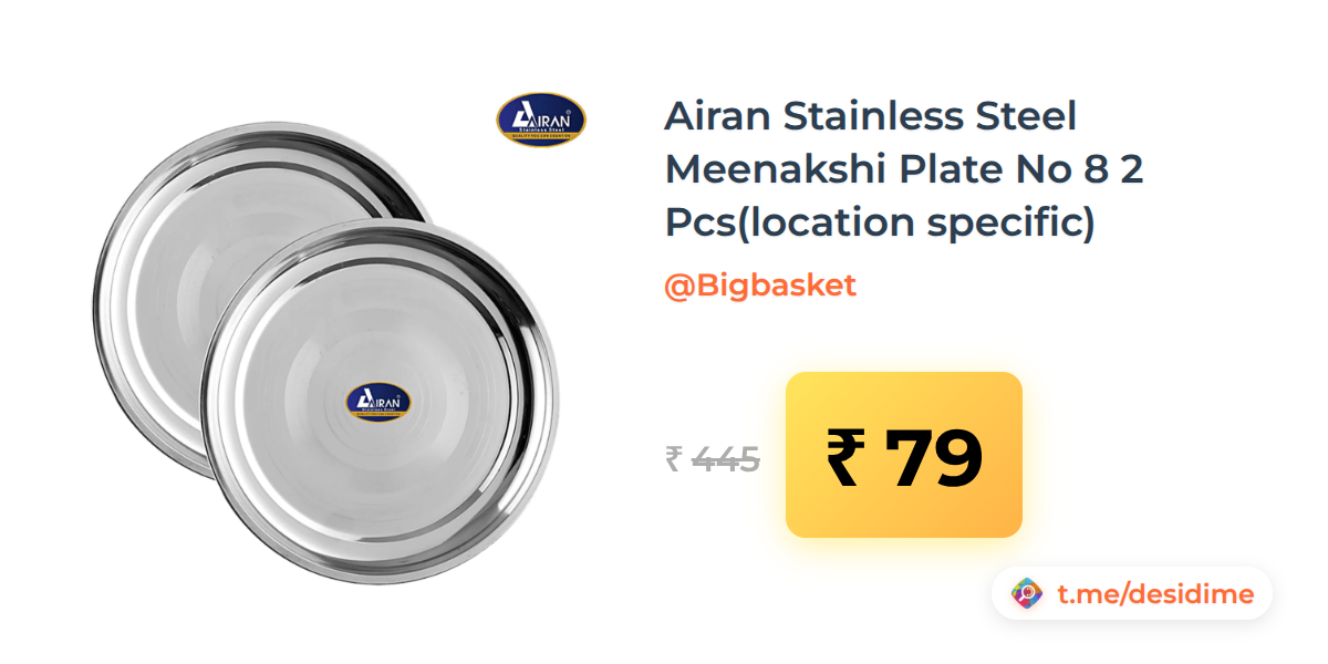 82% off on - Airan Stainless Steel Meenakshi Plate No 8 2 Pcs(location specific) - Rs. 79