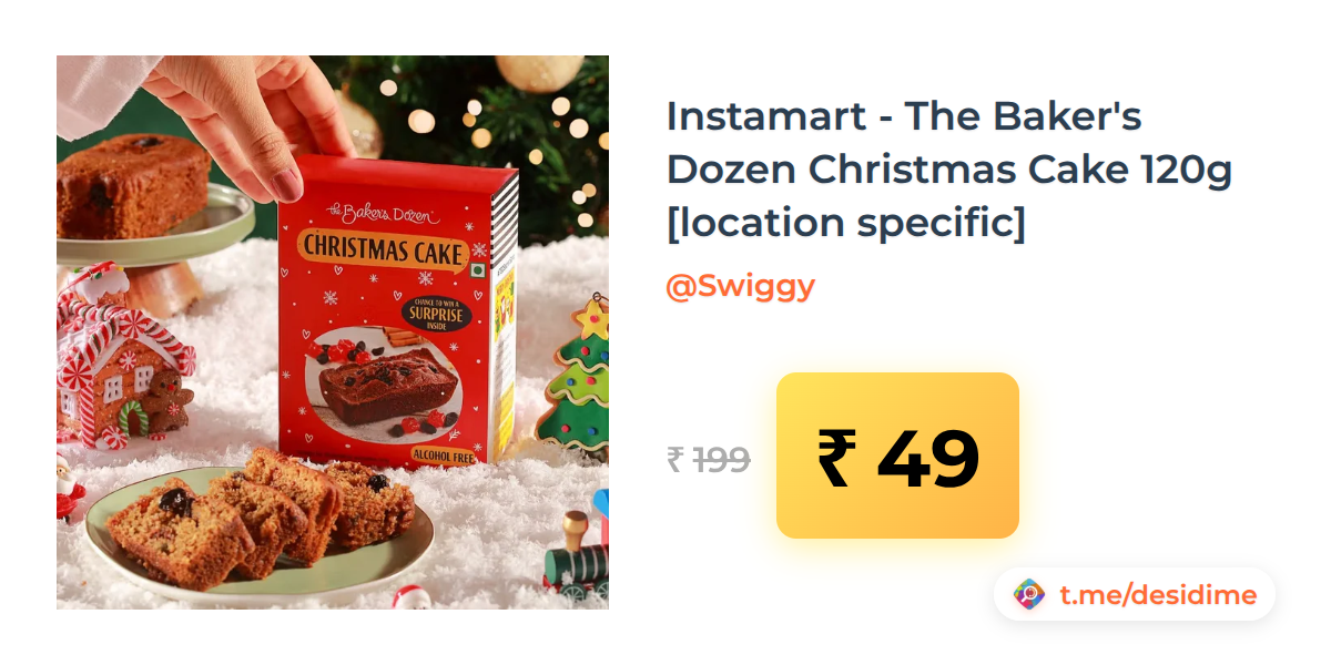 75% off on - Instamart - The Baker's Dozen Christmas Cake 120g [location specific] - Rs. 49