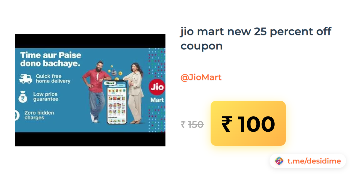33% off on - jio mart new 25 percent off coupon - Rs. 100